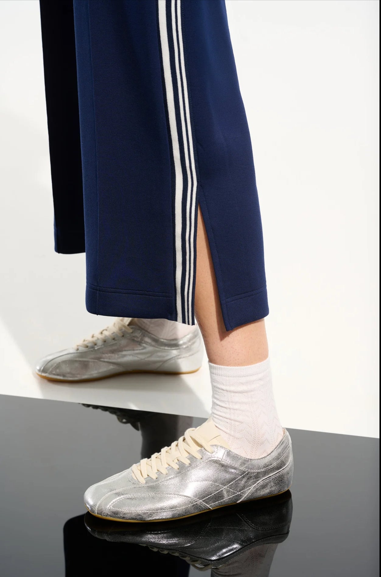 Introducing the JOSEPH RIBKOFF PANT 261618, a stylish and versatile addition to your wardrobe. This pant features a wide leg design and side slits for a modern touch. The combination of indigo and vanilla colors adds a chic aesthetic to any outfit. Made in Canada with a blend of polyester, rayon, and spandex, these pants offer both comfort and style.