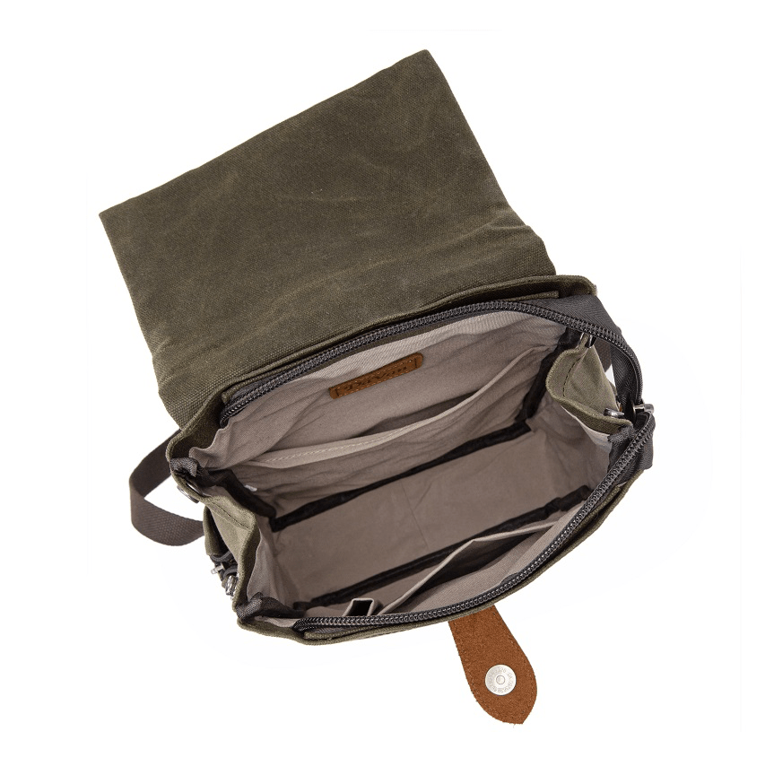 This multifunctional bag is perfect for those on the go. Its small size makes crowded buses and streets easy to manage while keeping all of your belongings close while the waxed canvas keeps them dry. It can be used as both a sling bag and a backpack. This bag also features our classic top-grain leather trim, anti-rust hardware, and adjustable straps.