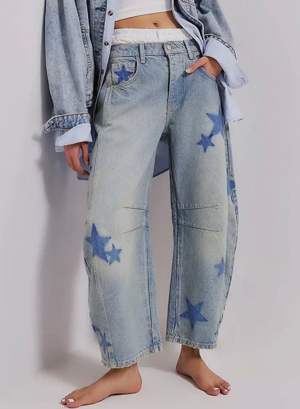 Love Star Print Loose Midi Waist Jeans