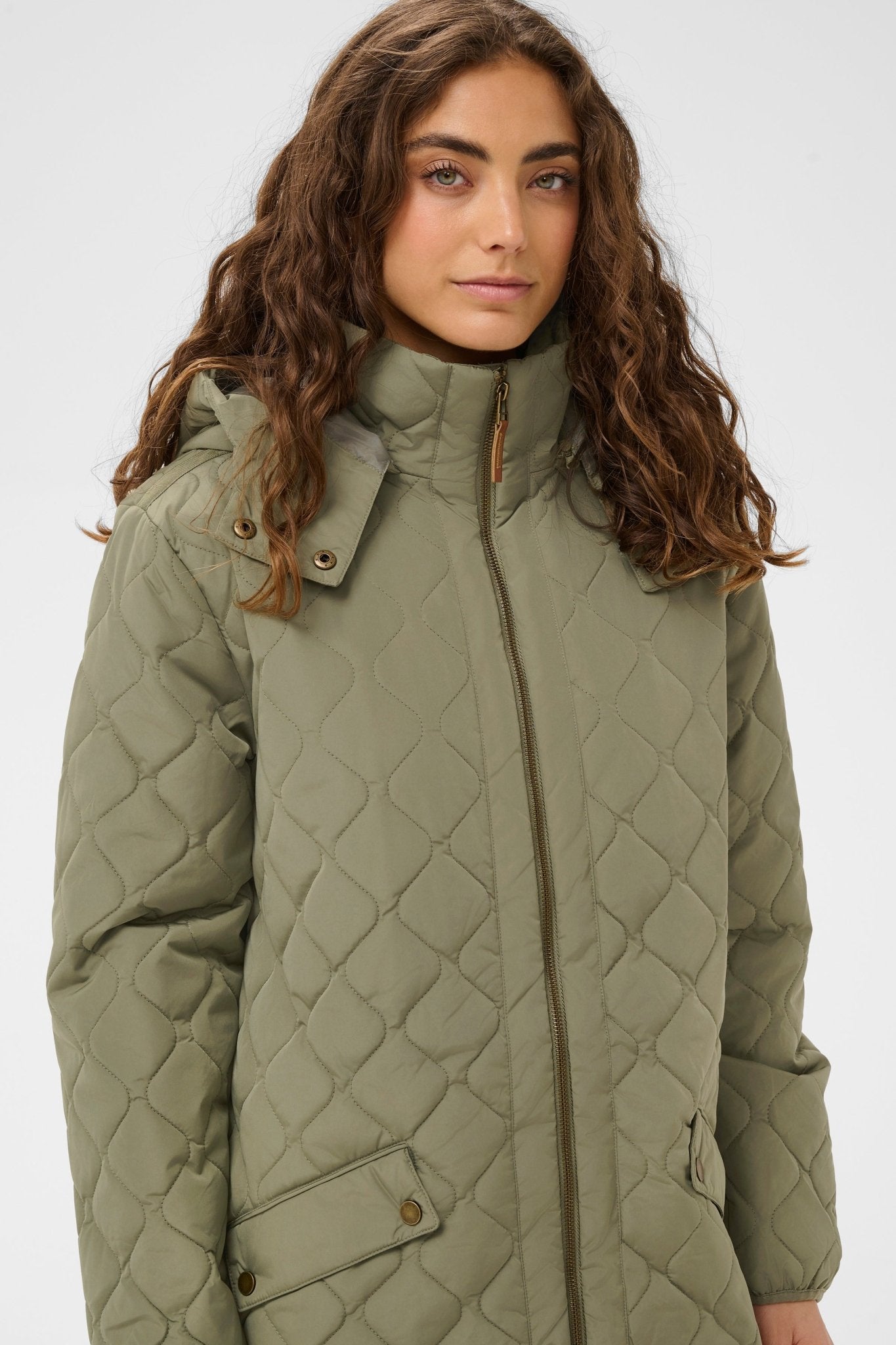 Expertly crafted from 100% polyester, the Arwen Jacket with hood is a versatile piece for any wardrobe. With a mid length and quilted design, it offers both warmth and style. The loose fit and removable hood provide added comfort and functionality. Elevate your outerwear game with this must-have jacket.