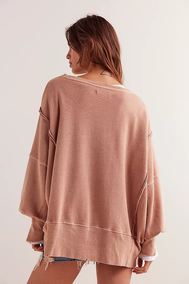 Features: Scoop neckline, dropped shoulders, side slits at bottom, ribbed hems, defined seaming