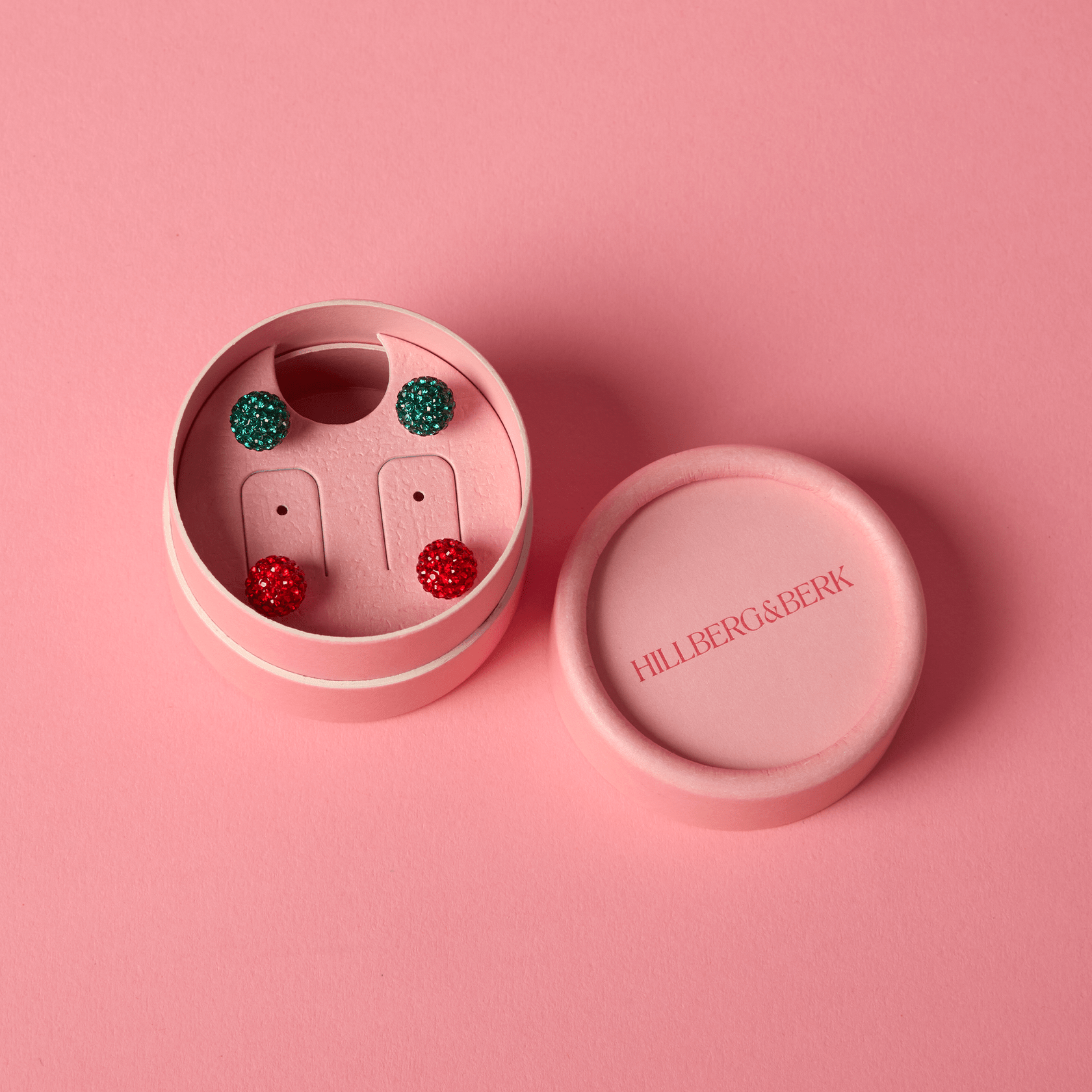 For the woman who makes the season shine her way. The Holiday Sparkle Set brings together two Small Sparkle Ball™ Studs in festive red and green—timeless hues that feel joyful, bright, and a little nostalgic. Hand-set crystals in a clay base create a multidimensional shimmer, while .925 sterling silver posts and backs ensure lasting comfort and quality. Whether you’re gifting or glowing yourself, this duo is the easiest way to add a pop of cheer to every holiday look.