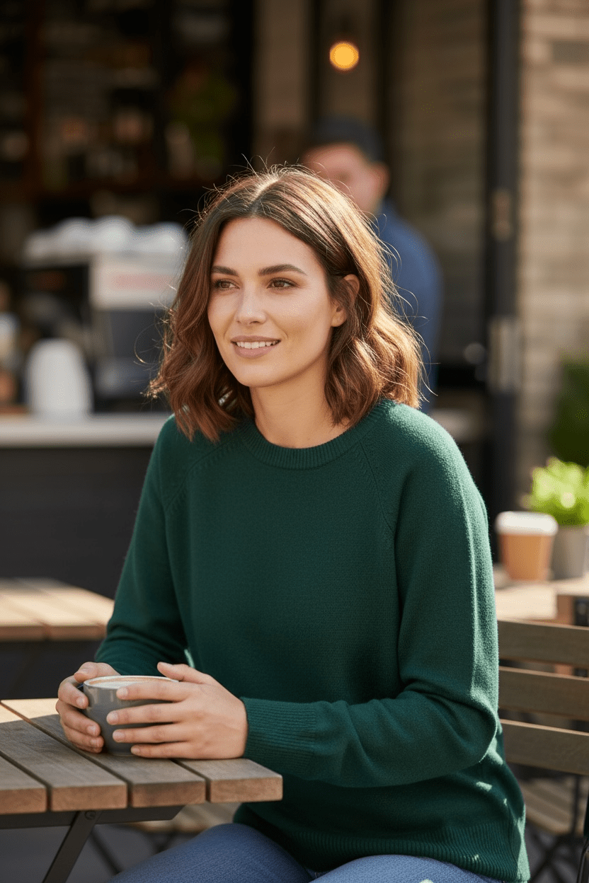 Introducing the Begonia Sweater in green. This soft, crew neck sweater features long sleeves and a waist length fit. Made from a blend of 60% viscose and 40% polyamide, it offers both comfort and style. Perfect for any occasion, it's a must-have for your wardrobe.