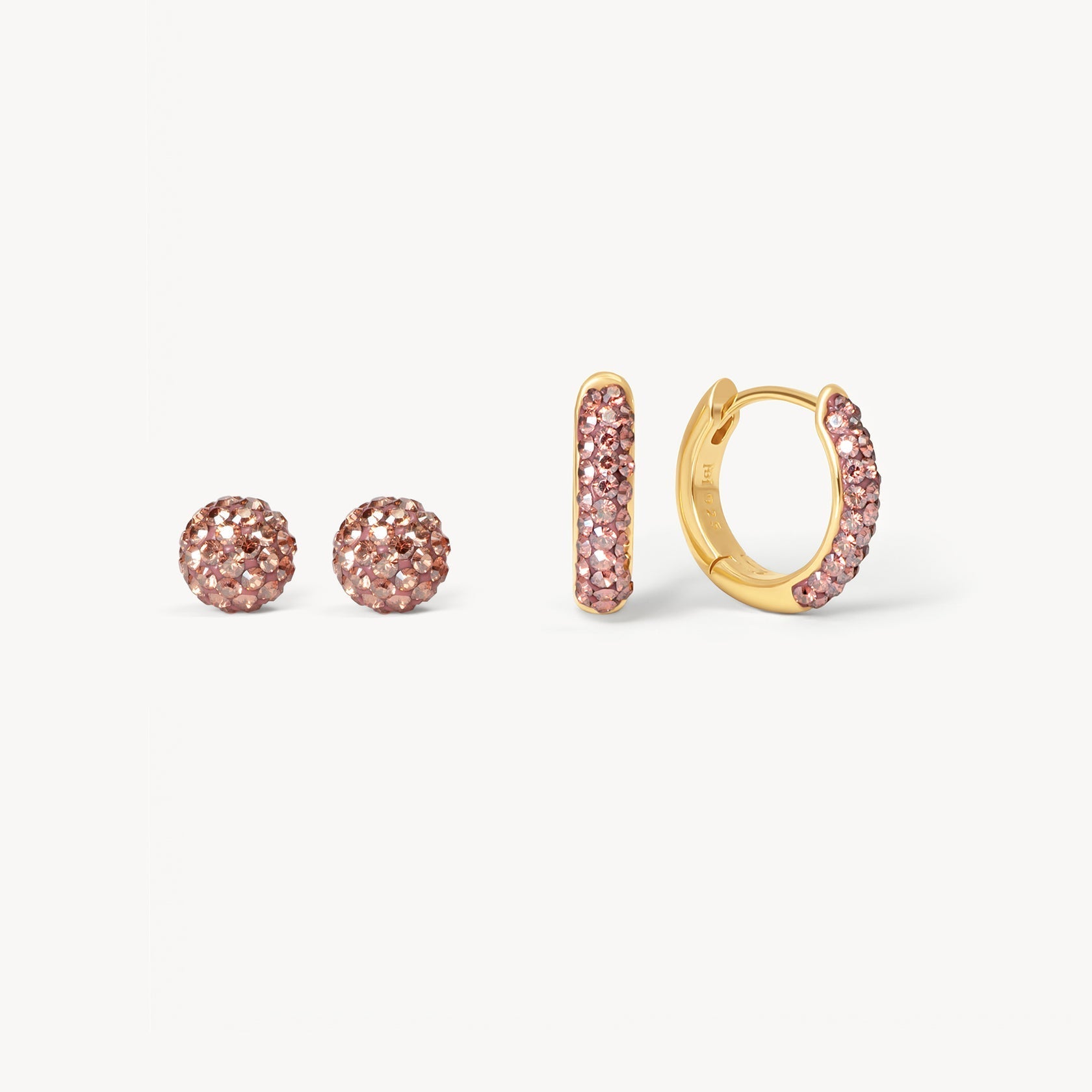 Un duo à porter partout, dans une teinte unique. Ce coffret cadeau coordonné comprend nos élégantes créoles Always On Sparkle de 14 mm et nos célèbres puces d'oreilles Mini Sparkle Ball™ de 6 mm, toutes deux en Desert Rose, un coloris exclusif Hillberg & Berk inspiré des couchers de soleil chaleureux et du doux sable du désert. Les créoles offrent un style deux-en-un avec leur revers en or poli, tandis que les puces d'oreilles offrent un éclat emblématique dans une silhouette plus petite. Léger, polyvalent et infiniment flatteur, cet ensemble est fait pour vous accompagner dans vos déplacements.