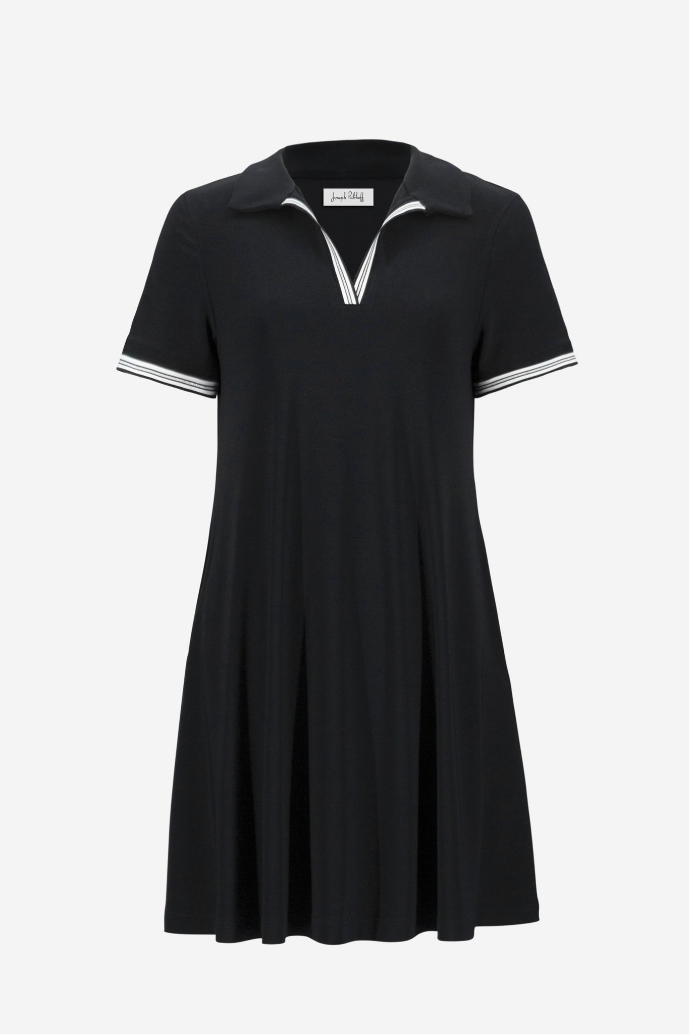 Expertly crafted in Canada, the JOSEPH RIBKOFF DRESS 261614 boasts a flattering A-line silhouette, perfect for any occasion. The polo collar and V-neck add a touch of sophistication, while the short sleeves offer comfort and versatility. Made with 96% Polyester and 4% Spandex, this dress guarantees a perfect fit and effortless style.